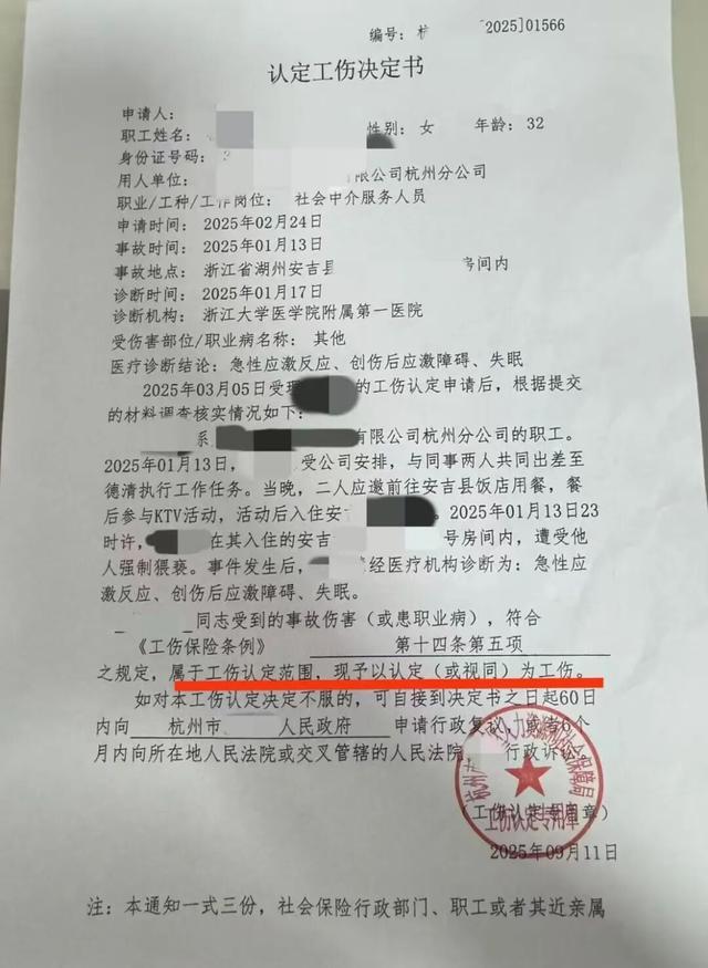 今年9月,浙江省杭州市某区人力资源和社会保障局“参考先例”,对一名在出差时被强行猥亵、患有精神疾病的女职工认定工伤。当事人王琪(化名)就职于山东某人力资源机构杭州分公司。今年1月13日,他到隔壁城市出差。他入住酒店的那天晚上,他的客户强迫他玩。王琪醒来,逃进卫生间逃跑。此后,他患有慢性压力和创伤后应激障碍,无法工作。 2月初,王奇在网上看到,与自己有类似经历的天津女子崔丽丽已成功办理工伤。王琪也如法炮制,申请了工伤。很快,当地社会局联系了他,并告知他。他表示,以前没有做过这样的决定,“但参考了以前的做法,尝试去做一下”。这前者,正是王琪见过的崔丽丽的情况。新京报此前报道,2023年9月,担任天津某公司营销总监的崔丽丽在出差时遭到老板性侵,患上创伤后应激障碍。经过一年多的痛苦经历,2024年12月,津南区人力资源和社会保障局根据《职业工作保险条例》认定其为工伤。这也被媒体称为“该地区首例国内性侵认定为工伤案件”。新京报记者从崔丽丽处获悉,今年6月,杭州某区人力资源和社会保障局,以王琪工伤相关身份,还给他打电话询问相关事宜。王琪的工伤认定结果,为精神疾病工伤认定提供了又一参考。 ▲王琪(化名)的工伤相关证明。照片由采访者提供,被强迫后患上创伤后应激障碍。 5月,婚礼前三天,王琪赶赴200公里外的法院旁听犯罪嫌疑人的庭审。在法庭上,这一违法行为再次被提起。王奇清楚地记得,1月13日晚上,他和同事万某去浙江省安吉县出差。晚上和客户一起吃饱喝足后,入住客户安排的当地酒店房间。判决书显示,当晚23:00左右,男顾客从KTV来到酒店前台,拿到了王琪的房间,并刷卡进入其房间。当王琪洗完澡睡觉时他用手抓住她的乳房,并用她的下半身触摸她的私处,以示不尊重。王奇回忆,当他意识到不对劲时,他立即惊醒,挣扎着从床上跳起来,躲进卫生间并报了警。很快警察就来了。次日凌晨1点左右,王琪从办案民警处得知,犯罪嫌疑人已被报警。为什么这位客户可以进入他的房间?事发第二天,酒店工作人员告诉他,顾客告诉前台,他的房间里落了东西,从而骗了他的房卡。犯罪嫌疑人证实了这一犯罪行为,5月,他因实施该事件被判处有期徒刑九个月,缓刑一年零三个月。王奇表示,犯罪分子在案件侦查、起诉、审判阶段均请求宽恕。最终,在法庭审理过程中,双方达成谅解。的经历被迫猥亵也给王琪带来了伤害。经警方调查,回到杭州老家后,他的反应慢了几拍,“父亲浑身发抖不省人事”。晚上,恐惧袭来,他不敢入睡。 “我只能强迫自己熬到天亮。”意识到不对劲,王琪于1月17日到浙江大学医学院附属第一医院进行精神科检查。门诊病历显示,这些症状是由急性应激反应引起的。 6月底,他们从杭州搬来,无意中在网上发现:天津职业女性崔莉莉被公司老板强奸,患上创伤后应激障碍。在她提交医疗记录的指示下,警方收到了事件的简要描述。她被告知他们不会做出这样的决定,但他们知道全国各地都有先例安全局向他提到,他们之前的工作起义更多地集中在身体伤害上。 9月11日,王琪收到了认定工伤的决定书。决定书显示,人力资源社会保障局认为,王琪的意外伤害符合《工伤认定条例》第十四条第五项的规定,即员工在下班期间因工作原因受伤或者发生事故,必须考虑贵州省六盘水市工伤局指控性侵。 9月29日中午,他的简历还在官网上,但两小时后突然被删除,中山区警方称,该事件发生在中山区,案件正在调查中。d 已报告给检查组。图为付先生介绍。近日,澎湃新闻。记者接到知情人举报,称贵州省六盘水市水城区城管局副局长付某涉嫌其女儿的性儿子被水城区公安局刑侦大队抓获,付某受到处罚。但迫于某种压力,付某的妻子被迫要求警方撤案。记者联系了女孩的生父,生父表示上述情况属实。水城区城管局一名工作人员表示,得知此事后,他们可以向纪委、公安局咨询,也会向领导汇报,并会向领导通报更多情况。水城区政府办公室回应称,处理此案的权限是公安B。ureau,并将反馈给领导层进行调度。水城区刑侦大队回应称,事件发生在中山区,案件正在中山区办理中。中山区警方回应称,该拘留的已被拘留。案件报告给检查组,不能因为当事人要求就轻易驳回。对于网上流传的“傅保人问题”,对方表示,如果办案过程中出现问题,可以向纪委或公安局反映。记者随后致电付某,但电话无法接通。 29日中午,记者在该局官网找到付的简历。毕业于贵州师范大学法学专业,分管市政园林、防洪、安全、应急救援等工作、招商引资等活动。现任水城区城管局党组成员、副局长。下午2点30分再次浏览网页时,发现FU简历已经被删除了。