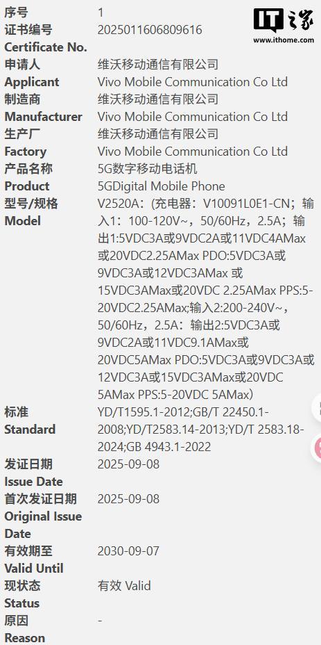 根据9月9日的Home,国家质量认证中心显示,Vivo的两个新手机现已通过了3C认证。这两款手机昨天通过V2520A和V2505A型号通过了3C认证,并配备了带有V10091L0E1-CN型号的充电器。它结合了其充电规格如下:V2520A:输出1:5VDC3A9VDC2A11VDC4AMAX20VDC2.25AMAXPDO:5VDC3A9VDC3A12VDDC3A12VDDC3AMAX15VDC3AMAX3AMAX20VDC 2.25AMAXPPS:5-25MAXPS:5--2.25C2.25MAX2220VDAMAX2220VDAM5225MAXC220VDAM55-25C.25MAXC220VDAM5。 5-20VDC2.25AMAX输出2:5VDC3A9VDC2A11VDC9.1AMAX20VDC5AMAXPDO:5VDC3A9VDC3A12VDC3A15VDC3A15VDC3AAMAX20VDC3AMAX20VDC 5AMAXPPS 5AMAXPPS 5AMAXPPS:5-20VDC 5AMAX可以在最大值上算出最大输出电源。 100W。 Blogger @digital Chat Station今天揭示了有关微博中两款新手机的其他信息。房屋附加相关信息,例如Sufollowing:V2505A:对应于IQOO 15,支持100W有线充电和无线充电,具有7个启动大型配备了Snapdragon 8E5 E-Sports双核平台的电池,标准配备2K三星屏幕 + Periscope +金属中部 +超声指纹 +超声指纹 +全级水上防水 +高特异性 +全级水上防水 +高特异性水平 +高电动sung-Sung-Sung-Sung-Sunge-Sunge,新颜色。 V2520A:与IQOO NEO PRO一致,它还支持100W有线充电,大电池从7开始,配备了Dimente 9500处理器,并配备了2K家用屏幕 +金属中帧 +超声指纹,“有机会添加水坑”。同时,根据Blogger @日本Pikachu的说法,新的IQOO NEO PRO将是发布Dimente 9500芯片的最快机器。